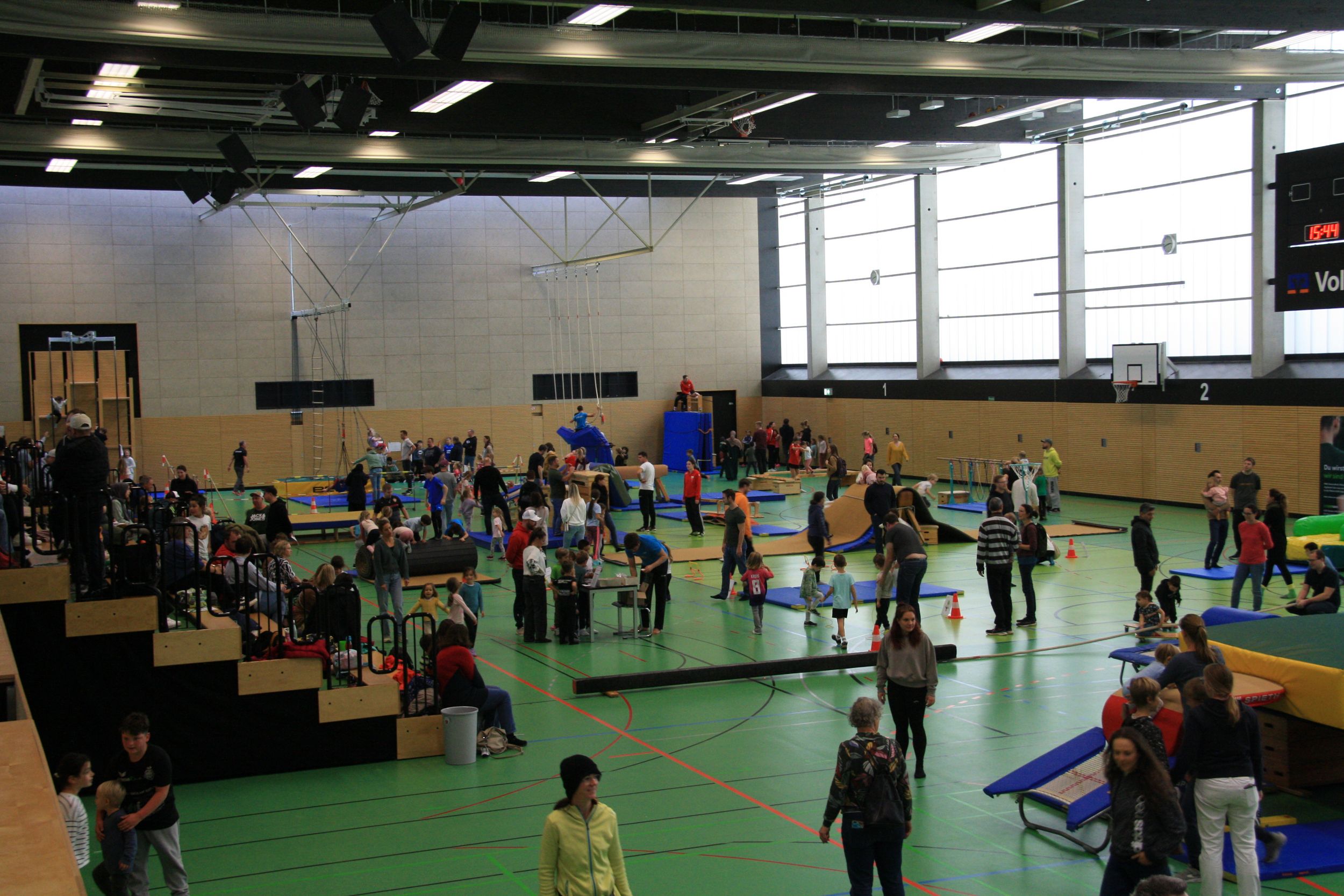 Zusätzlich wurde in der gesamten Halle vielfältige Bewegungsangebote, Stationen und Aufbauten verteilt, für Kinder im Alter von 5 bis 11 Jahren war für jeden Geschmack und jedes Bewegungslevel etwas Passendes dabei.