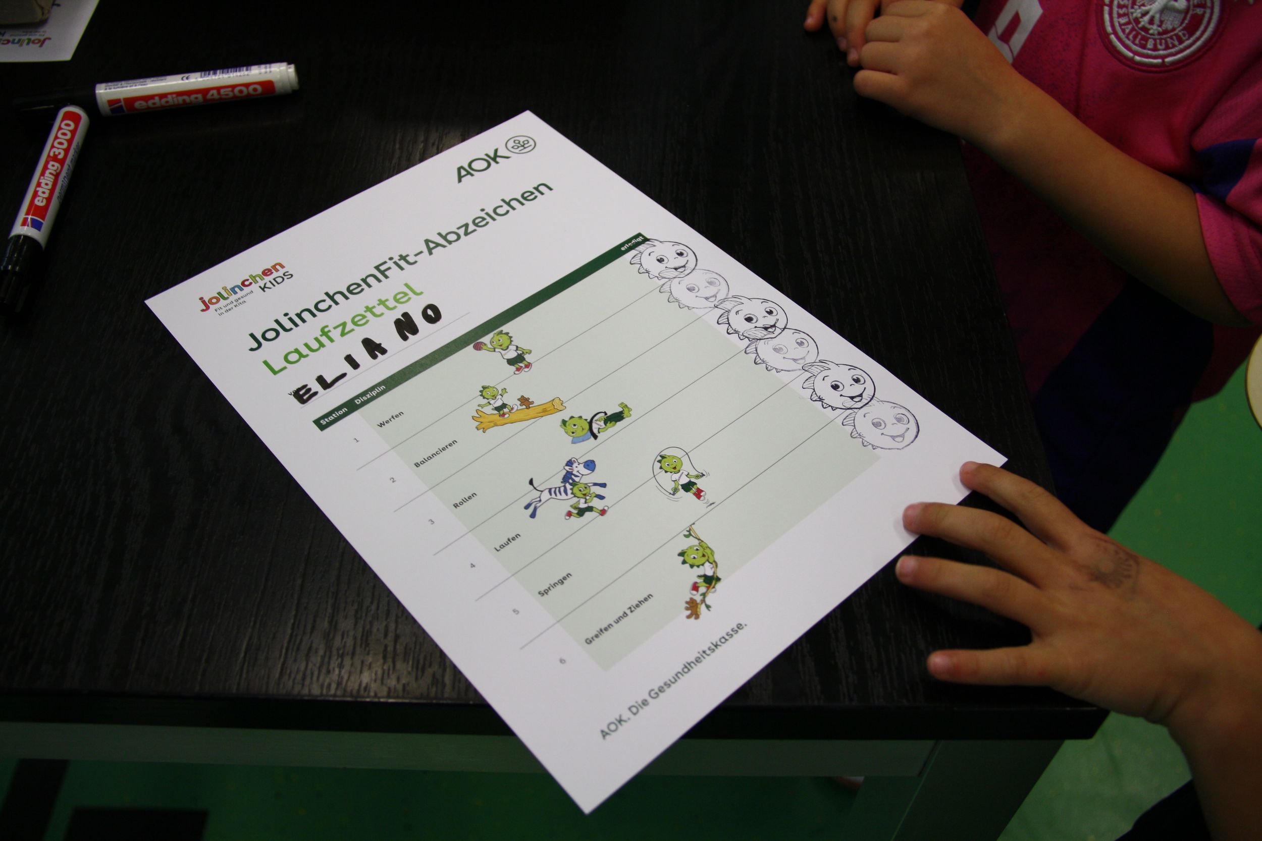 In diesem Jahr trat die AOK als Sponsor auf und stellte sechs abwechslungsreiche Stationen und Angebote im Rahmen des Jolinchen Abzeichens zur Verfügung.