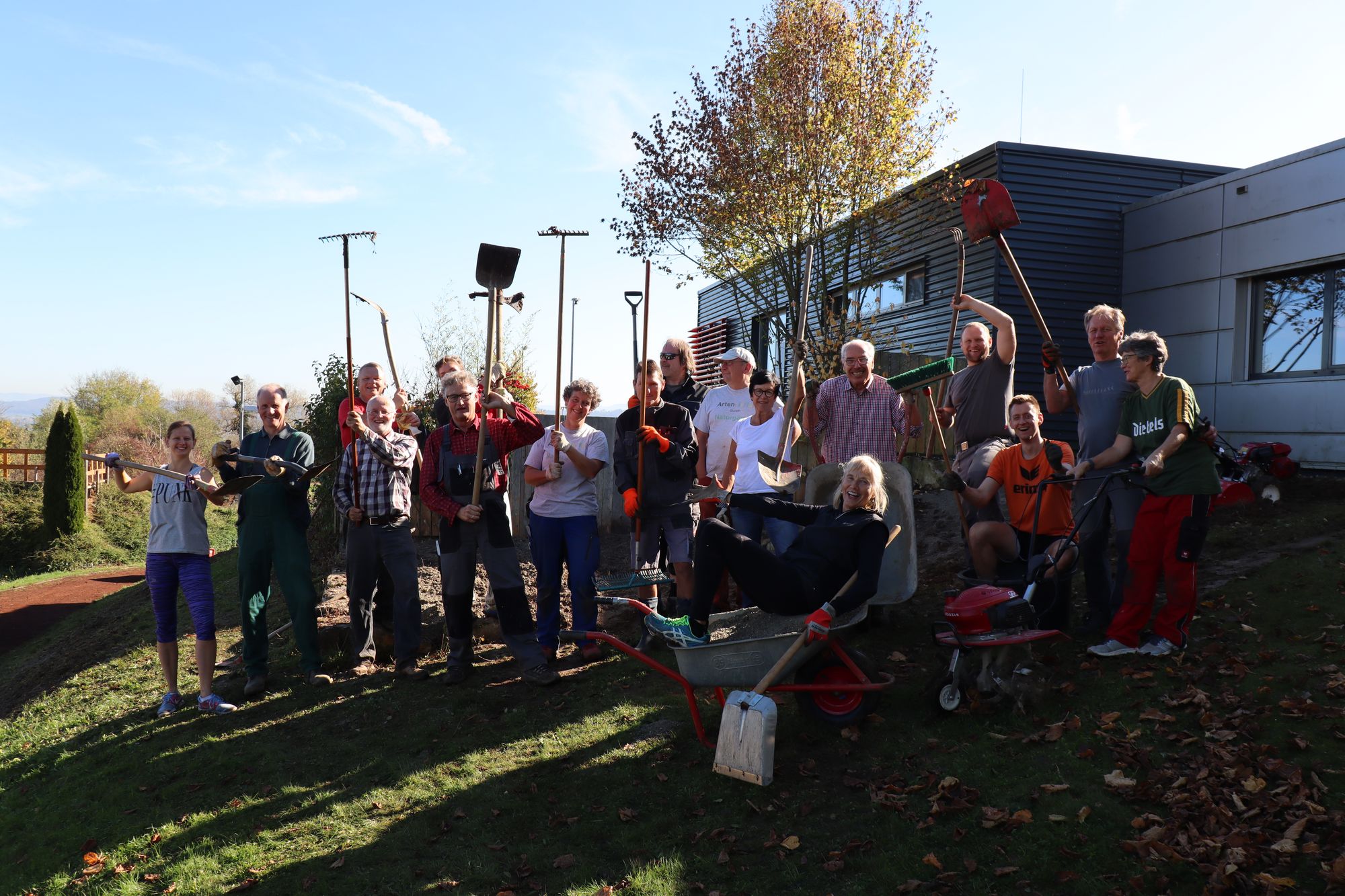Dabei werden die Außenanlagen nach ökologischen Gesichtspunkten umgestaltet. Gefördert werden die Maßnahmen vom NABU Baden-Württemberg und von der Stadt Rottenburg über das Bürgergeld. Im ersten Schritt legten 20 ehrenamtliche Helferinnen und Helfer ein Staudenbeet an und bereiteten Flächen für die Einsaat von Blumenwiesen vor. Im kommenden Jahr sollen weitere Maßnahmen angegangen werden. Das Konzept erarbeitete der TVR mit der Gartenbauingenieurin Doris Deppe und dem Landschaftsgärtner Werner Krauß. Die landschaftsgärtnerische „Trainingseinheit“ erledigten die TVR-Helfer schneller als geplant – vor allem die Freizeitsport-Abteilung war mit einem großen und fleißigen Team dabei. Die Aktion hat Spaß gemacht, Rückenschmerzen vom Graben und Schaufeln wurden nur vereinzelt rückgemeldet. Im Frühjahr 2020 geht’s dann weiter in der Hoffnung, dass die „Blühenden Gärten“ tatsächlich aufblühen.