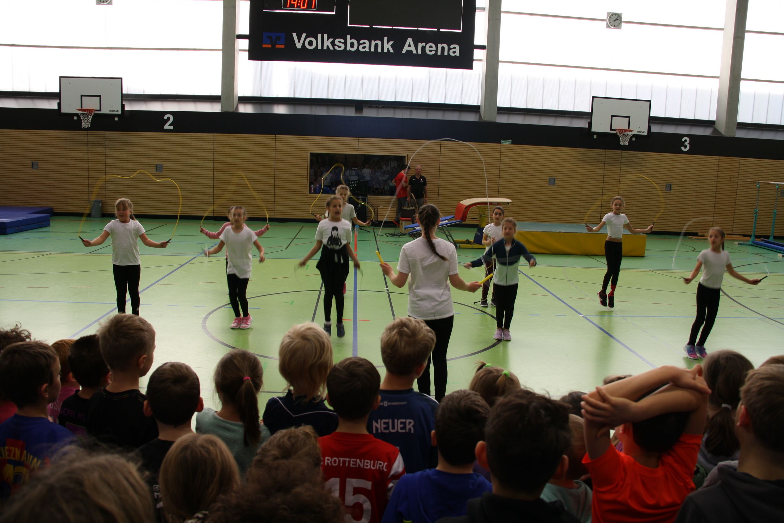 Die Feier begann mit dem gemeinsamen Singen von Weihnachtsliedern, bei dem die Kinder mit Begeisterung sangen. Es folgten unterschiedliche Aufführungen, um dem Nikolaus zu zeigen, was die Kinder alles für ihn vorbereitet hatten. Die Turnermädchen konnten mit beeindruckenden Darbietungen ihr Können zeigen. Genauso tat es auch unser Turner Florian, der am Barren und auf dem Boden beeindruckte. Auch die Ropeskipping-Gruppe und die Zumba Kids trugen mit energiegeladenen Auftritten zur Unterhaltung bei und sorgten für viel Applaus.