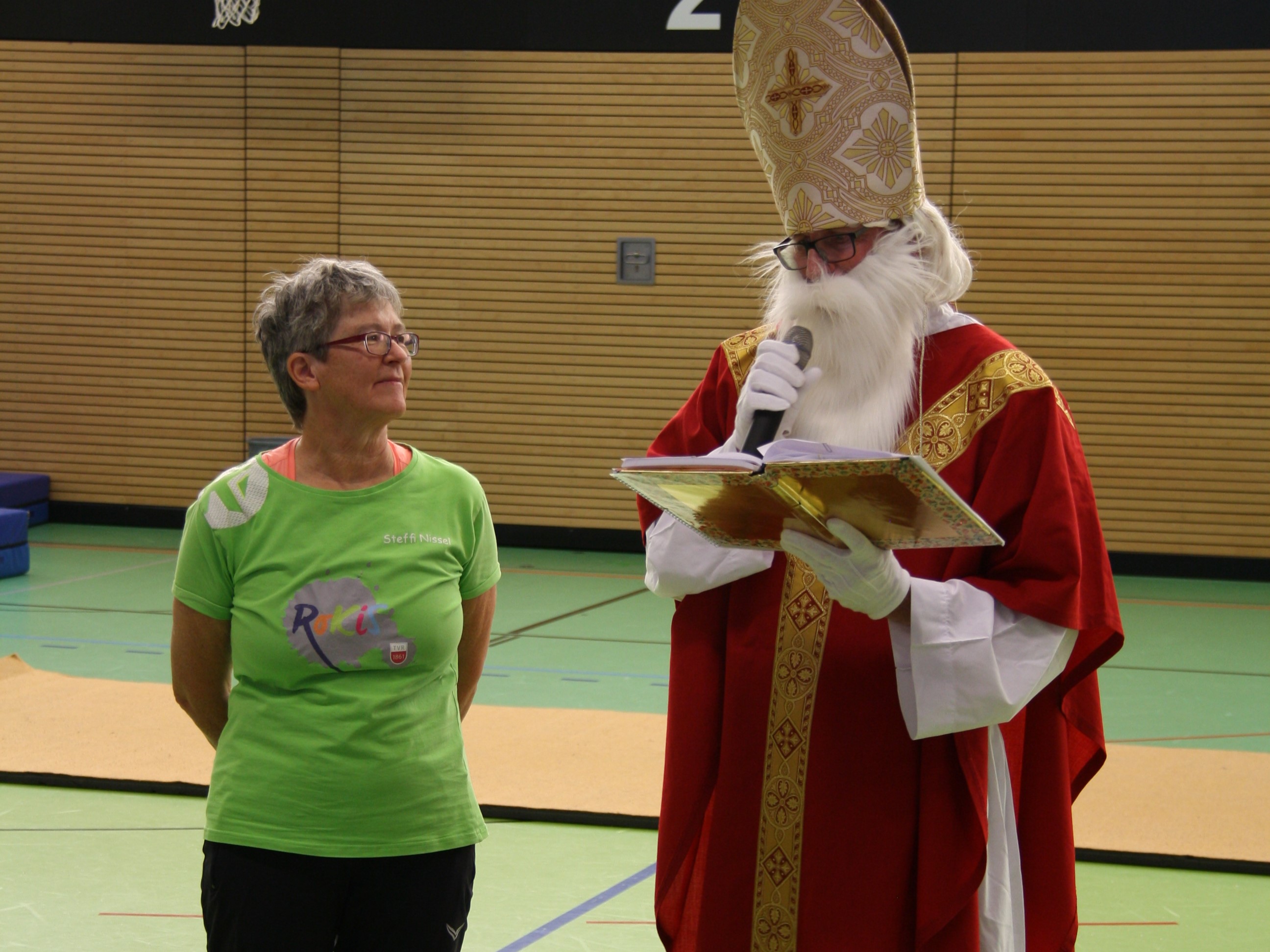 Ein besonderer Moment der Feier war die Verabschiedung von Steffi Nissel, der Abteilungsleiterin des Kindersports. Die Besucher sangen ein passend zum Abschied gedichtetes Lied für sie, um ihre Dankbarkeit für ihr Engagement auszudrücken. In einer Dankesrede lobten der Nikolaus und Sabine Siebrecht (1. Vorsitzende des Vereins) Steffi für ihre unermüdliche Arbeit und ihren Einsatz für die Kinder.