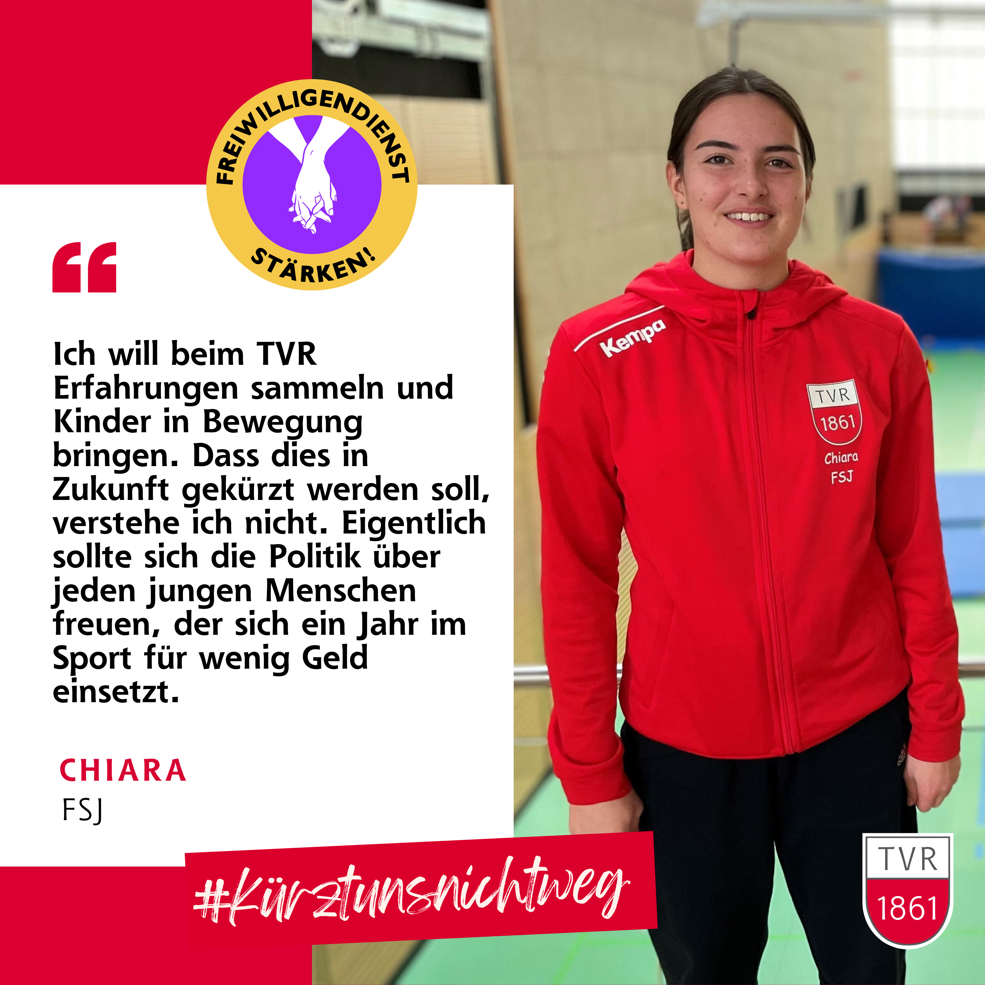 „Ich will beim TVR Erfahrungen sammeln und Kinder in Bewegung bringen. Dass dies in Zukunft gekürzt werden soll, verstehe ich nicht. Eigentlich sollte sich die Politik über jeden jungen Menschen freuen, der sich ein Jahr im Sport für wenig Geld einsetzt.“
