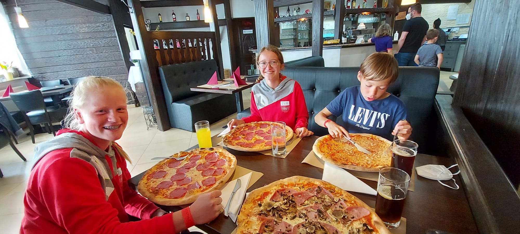 Am folgenden Wochenende 17./18.07. trennten sich die Wege unserer Athleten. Die U14 ging zusammen mit Yves zu den Württembergischen Bestenkämpfen U14 nach Dagersheim, welche den Württembergischen Meisterschaften in diesem Alter entspricht. Bei allen drei Athleten, Anton (9.), Antonia (26.) und Laura (42.) lief der Tag nicht ganz rund es haben sich schwächen in den einzelnen Disziplinen gezeigt. Anton und Antonia hatten zwar Bestleistungen im Weit und Sprint, für alle drei waren die Gesamtpunktzahlen aber etwas geringer als die Woche davor in Rottenburg. Dennoch ein Tag mit viel Spaß und einer riesigen Pizza zum Abschluss (s. Bilder).