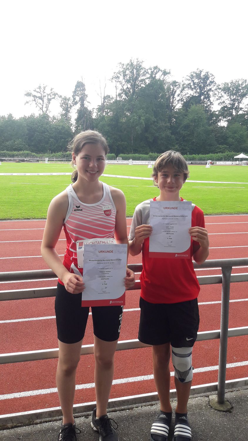 Am letzten Wochenende waren dann noch die Württembergischen Mehrkampfmeisterschaften U16 in Pliezhausen. Hier konnte Levin relativ überraschend, nach solider Gesamtleistung, den 8ten Platz erreichen. Etwas besser lief es für Felizitas, welche nach Bestleistung im Kugel (8,03m) und gutem Hochsprung (1,52m) einen hervorragenden 6ten Platz erreichte.