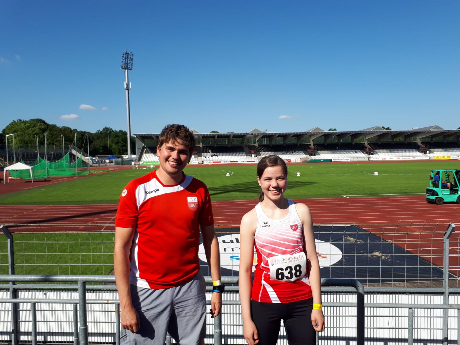 Zur gleichen Zeit waren die U16 Athleten, Levin, Phil und Felizitas in Ulm bei den Württembergischen Meisterschaften U16 Einzel. Alle drei waren entsprechend aufgeregt bei ihrer ersten großen Meisterschaft und dann auch noch im Donaustadion in Ulm. Mit neuer Bestzeit, 12.91s, über 100m und 2:35,19 über 800m war Levin am Ende des Tages sehr zufrieden. Phil konnte in einem spannenden Wettkampf beim Speerwurf mit Bestleistung von 44,75m die Silbermedaille gewinnen. Tag eins lief für Felizitas mit 4,45m im Weitsprung eher enttäuschend, was auch nur für einen 14ten Platz reichte. Tag zwei lief dafür umso besser. Nichts an Aufregung verloren konnte sie im Hochsprung mit Bestleistung über 1,54m den dritten Platz und damit die Bronzemedaille erreichen.