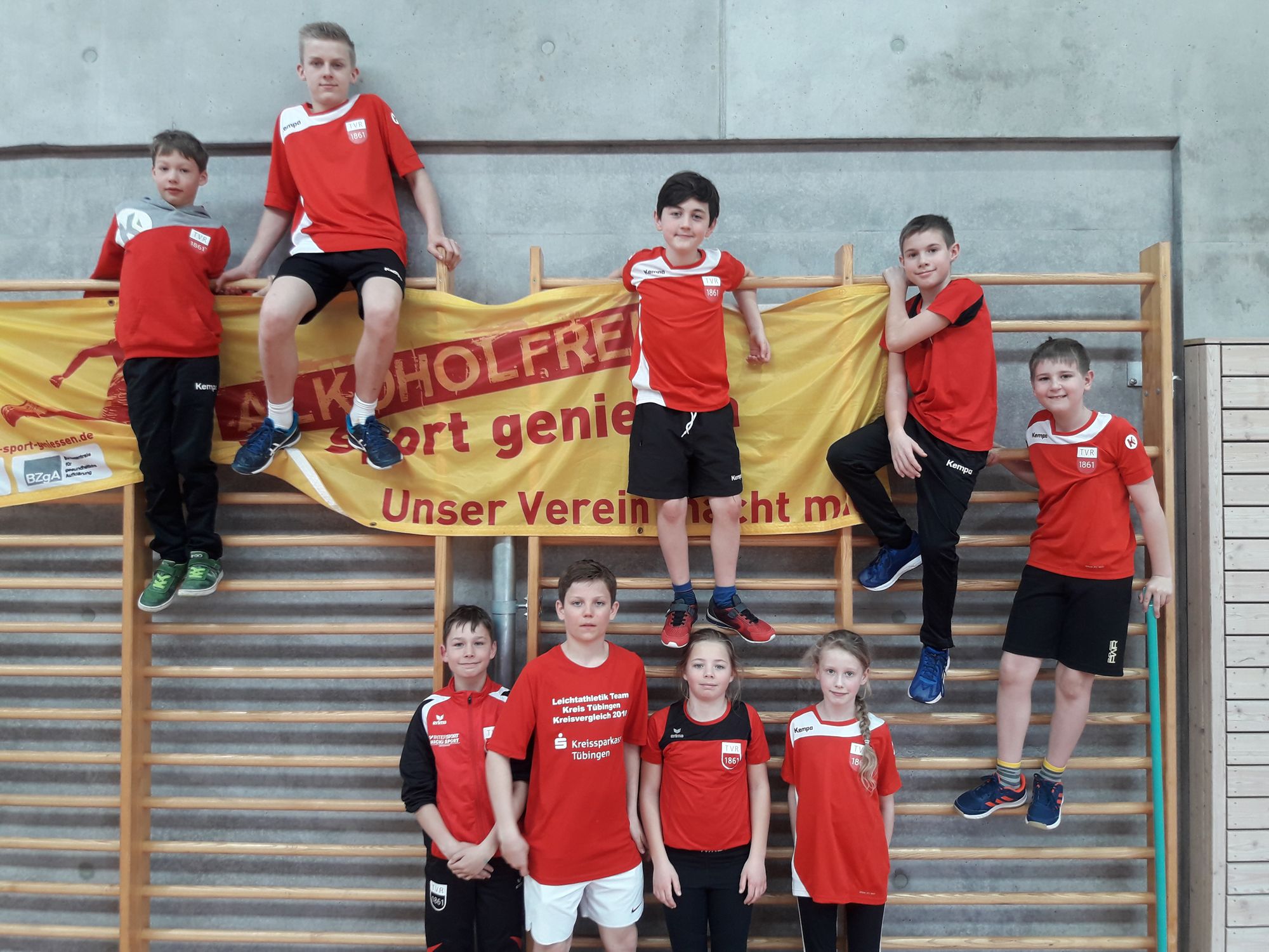 Dieses Wochenende fand am Sonntag der zweite Teil des Gomaringer Fair Energie Cups statt. Unter den 320 jungen Athleten waren auch 10 Kinder aus Rottenburg beteiligt. In einer voll gefüllten Halle wurde um jede Sekunde und um jeden Zentimeter gekämpft. Dabei konnten die Rottenburger gut abschneiden. Auch unser Wettkampf Neuling Lilly (Platz 21) konnte in ihrer großen Riegemitmachen und später auch für die Vereinsstaffel der U12/U10 starten. Unterstütz wurde sie hiebei von Cara (18.), Anton (10.), Robin (15.), Janne (18.) und Felix (5.). Für die U14 Jährigen lief der Wettkampf sogar noch etwas besser: Felizitas (5.), Levin (3.), Karl (4.) und Phil (1.) konnten sich gute Platzierungen erkämpfen.