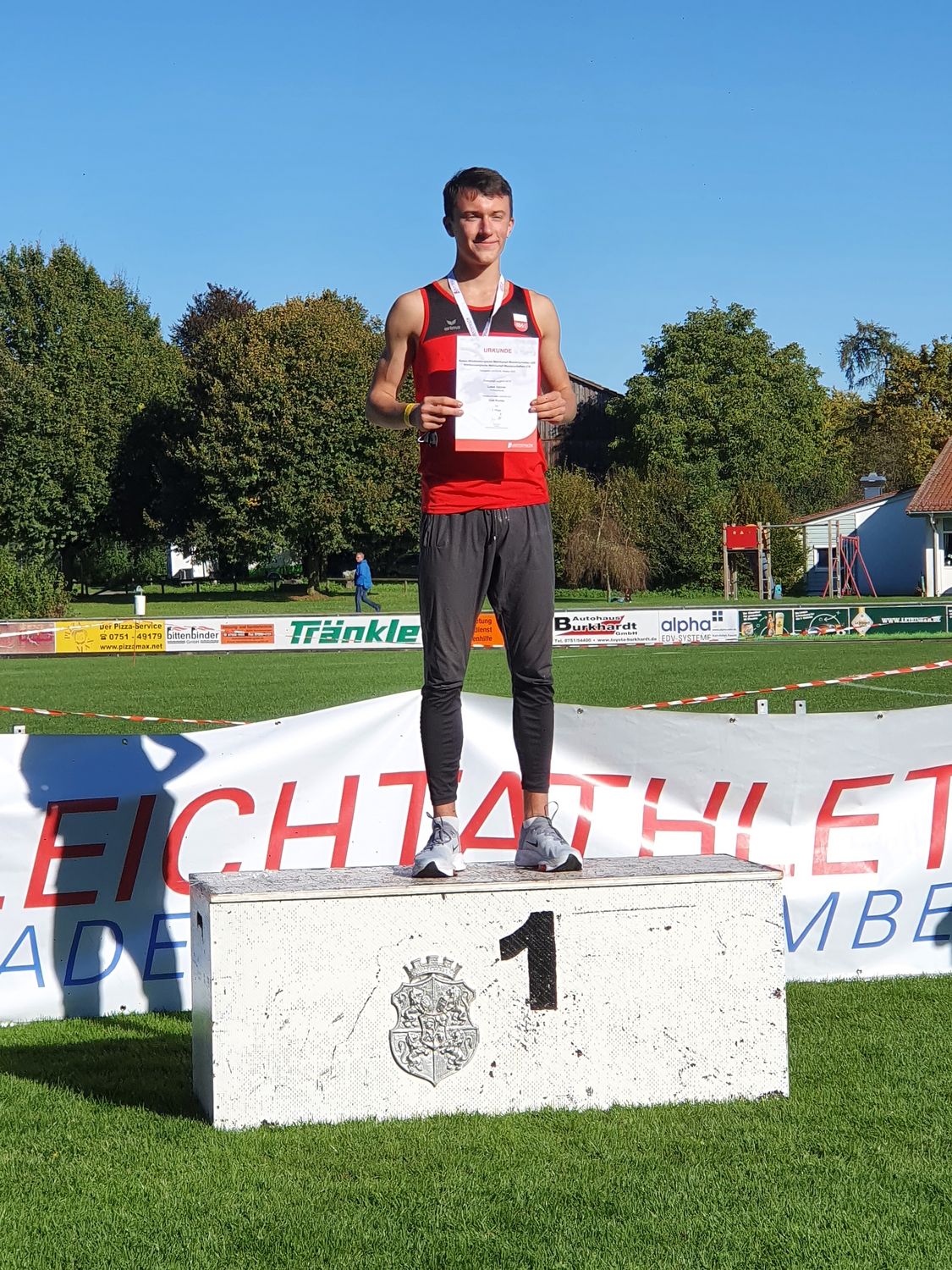 Die Verteidigung des schon im Vorjahr errungenen Vierkampftitels kam nicht überraschend. Lukas Gärtner hatte schon am 20. September bei den württembergischen Einzelmeisterschaften in Stuttgart drei Silbermedaillen im Hochsprung, Kugelstoßen und über 300m gewonnen. Im 100m-Lauf ging er als 4. durchs Ziel und stellte damit unter Beweis, dass er in seinem Jahrgang aktuell einer vielseitigsten Topathleten im Land ist.