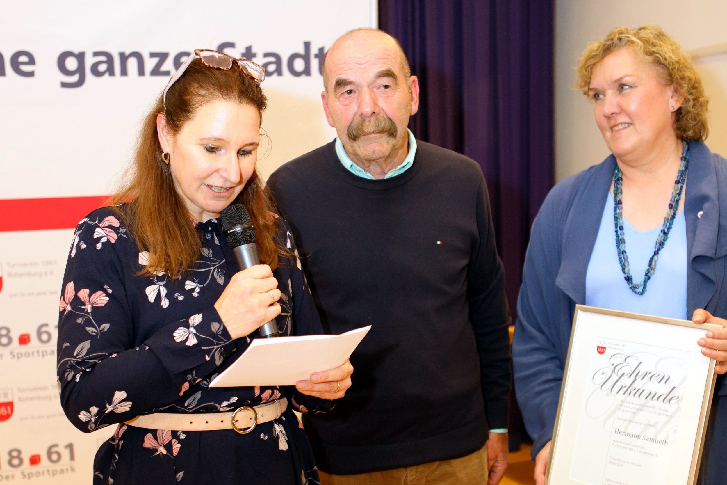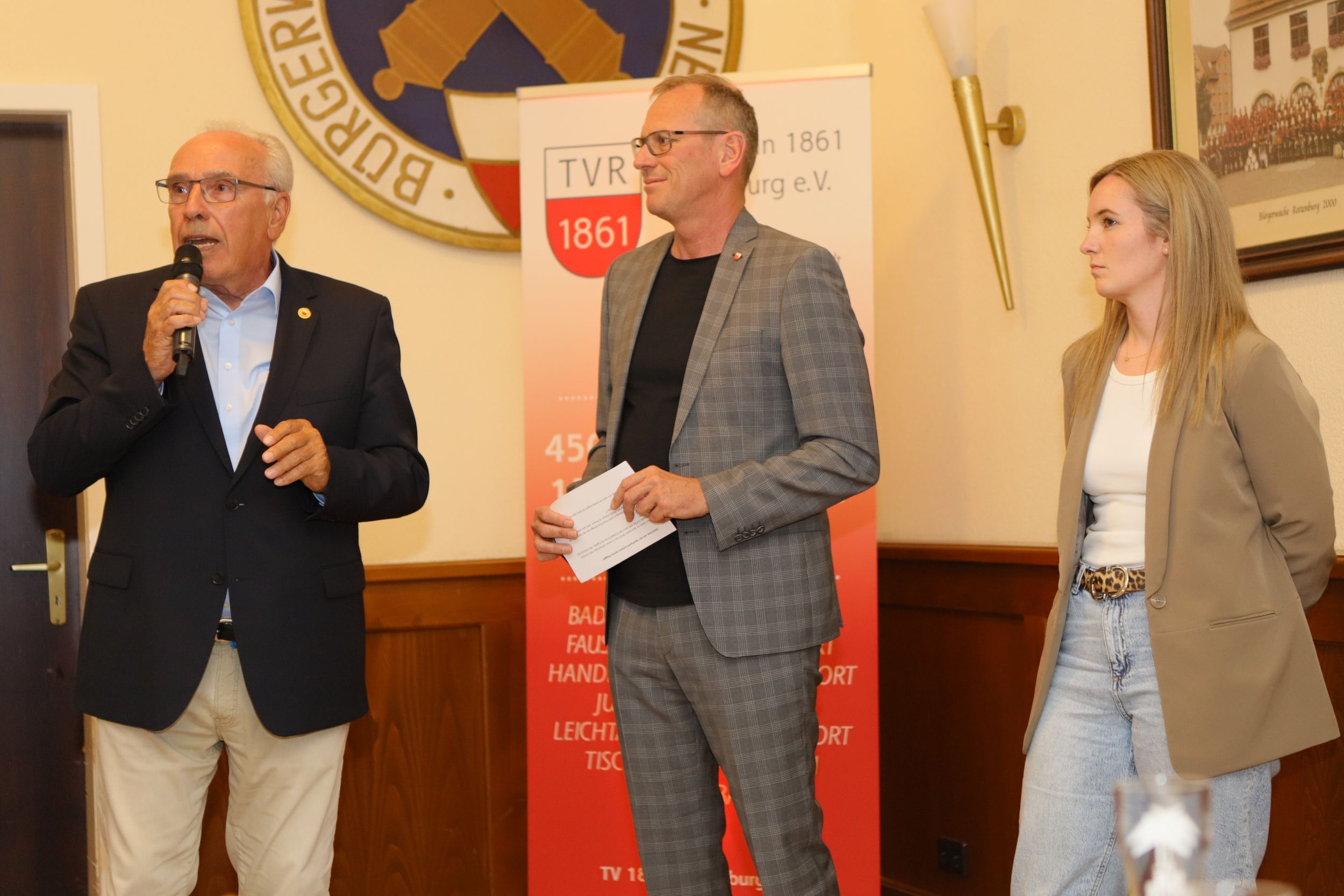 Für außergewöhnliches Engagement ernannte der TVR Stephanie Nissel und Hermann Sambeth zu Ehrenmitgliedern. Großen Beifall erhielt auch Reinhold Kiesel, der für 70 Jahre Mitgliedschaft ausgezeichnet wurde und bis heute im Sportpark aktiv ist. Herbert Baur und Martin Ruf wurden für 60 Jahre geehrt, und Ralf Hallmaier erhielt für sein langjähriges Engagement die Goldene Ehrennadel des Württembergischen Landessportbundes.