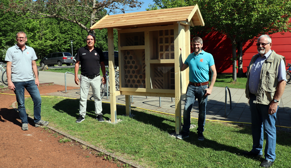 Über das Naturschutzcenter aus Rottenburg konnte das Projekt lokal umgesetzt werden. Markus und Meinrad Lohmüller unterstützten den TVR in der Beratung und lieferten dann den Bausatz fürs neue Insektenhotel. Damit ist ein weiterer Schritt im Rahmen des Projekts „Blühende Gärten“ vollzogen, das der TV Rottenburg seit dem vergangenen Jahr mit verschiedenen Maßnahmen rund um den Sportpark 18-61 umsetzt.