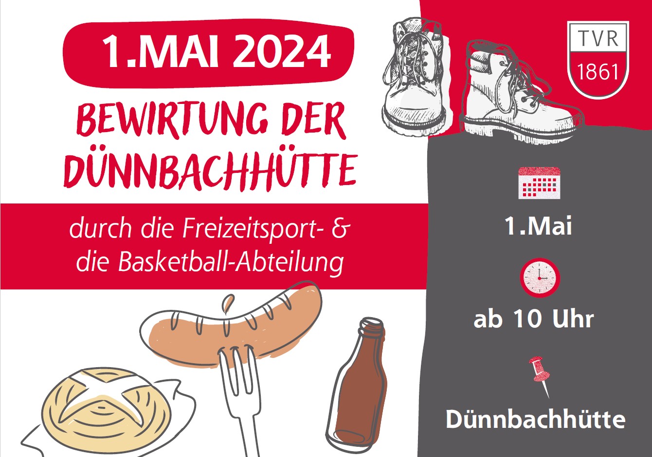 Der Maifeiertag rückt näher und mit ihm die traditionelle Bewirtung des TV Rottenburg an der Dünnbachhütte. Der TV Rottenburg lädt alle 1. Mai-Wanderer herzlich ein, ab 10:00 Uhr an der Dünnbachhütte bei seiner Bewirtung einzukehren.