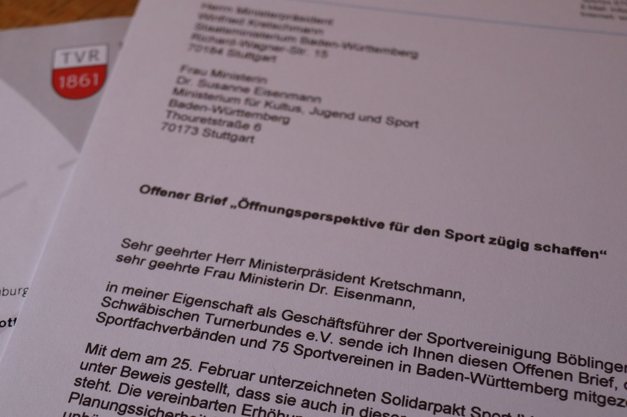 Der TV Rottenburg wendet sich mit 74 weiteren Vereinen und 34 Sportverbänden an die Landesregierung. Darin wird gefordert, dass die Sportvereine nach fast viermonatigem Lockdown wieder eine Öffnungsperspektive erhalten. Schon jetzt die die Folgen des Sportverbots dramatisch: Bewegungsmangel, Mitgliederschwund, Abbruch des Spielbetriebs, Wettkampfabsagen, weggebrochene Einnahmen, Stillstand in den Vereinen. Dass der Sport in vielen politischen Veröffentlichungen gar nicht vorkommt, löst nicht nur beim TV Rottenburg Unverständnis und Frust aus. „Der Sport darf nicht weiter ausgeklammert werden und braucht jetzt dringend eine Perspektive“, so TVR-Geschäftsführer Norbert Vollmer.