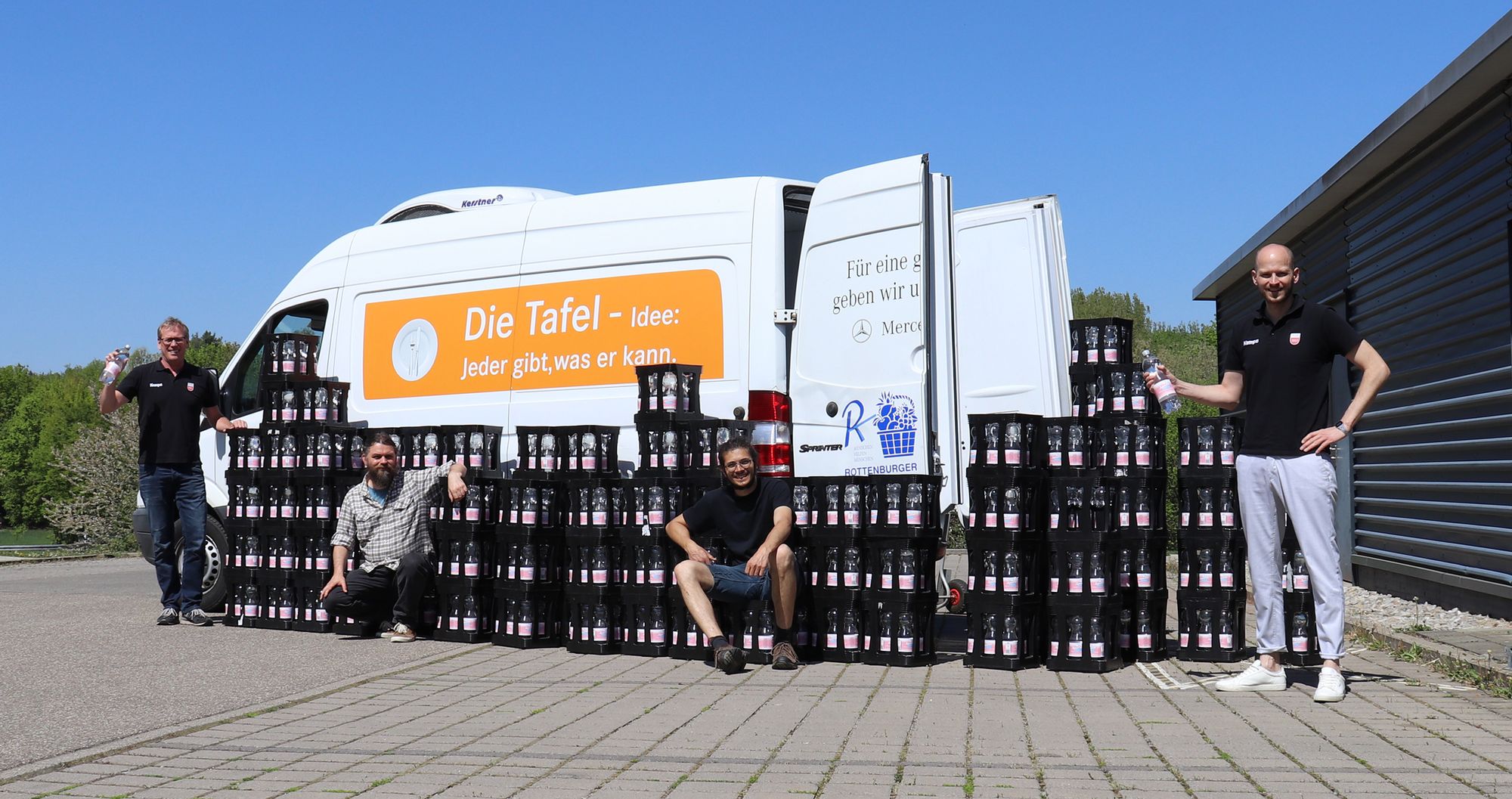 Der TV Rottenburg und die Imnauer Mineralquellen helfen der Rottenburger Tafel: 120 Kisten frisches Mineralwasser spendierte der Getränkehersteller aus Bad Imnau der Rottenburger Tafel, der TVR packte mit an und machte den Tafel-Sprinter bis unter die Decke voll. Bei diesen hochsommerlichen Temperaturen ist Mineralwasser ein gefragtes Gut bei der Rottenburger Tafel und wird den Durst der Kunden löschen. Ursprünglich war das Mineralwasser für das Europameisterschafts-Turnier U18 Volleyball gedacht, dass an diesem Wochenende in Rottenburg stattfinden sollte. Bis auf Weiteres wird kein Volleyball gespielt und die Hallen bleiben leer.